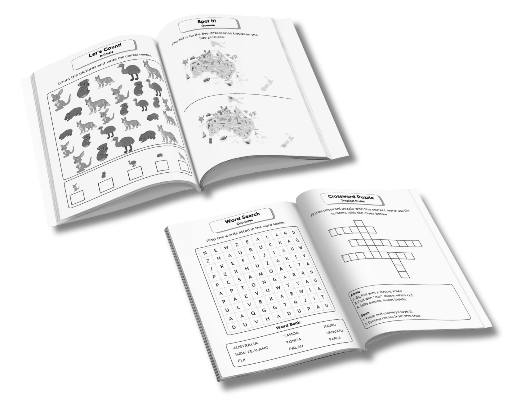 Travel across Oceania with puzzles, games, and fun learning activities for kids ages 6+
